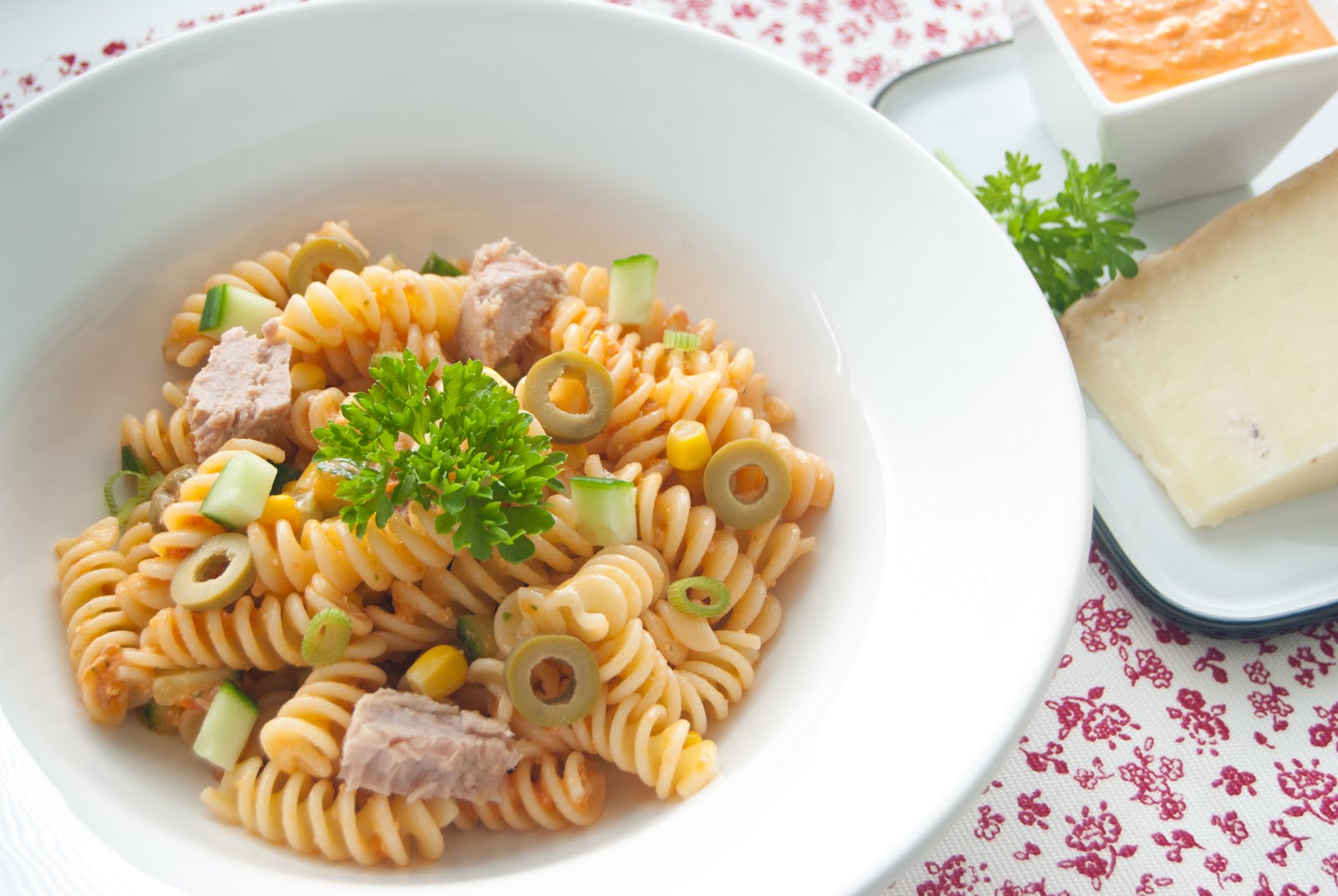 El jamón y el queso como indicadores cualitativos de amor y amistad (Pasta salad with manchego dressing)