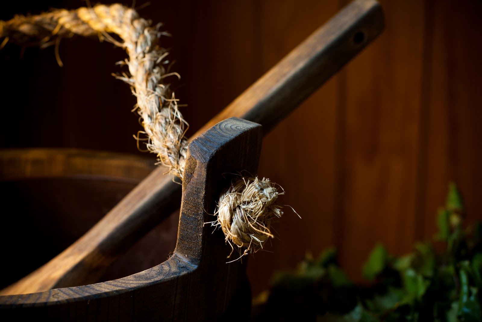 Bucket and ladle. Wooden and filled with cool water. Sometimes some essence is added to the water to get a special ambient. They are usually typical Finnish smells like tar, or more bucolic, as birch, eucalyptus or the whole forest itself.