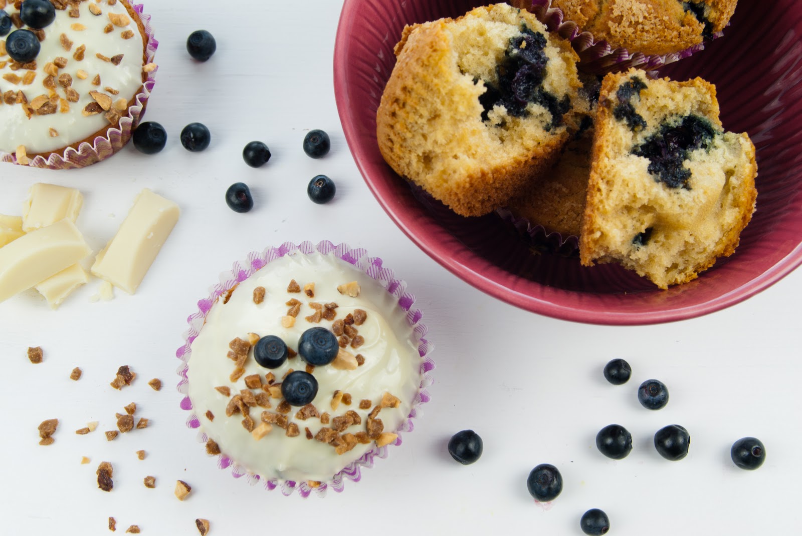 *Visto el percal, he utilizado 100 grs. de arándanos en lugar de 50 de arándanos y 50 de frambuesas y han quedado estupendos igualmente. Así que los míos han pasado de llamarse “mixed berry muffins” a “blueberry muffins” pero quería recoger la receta exactamente como viene en el libro.