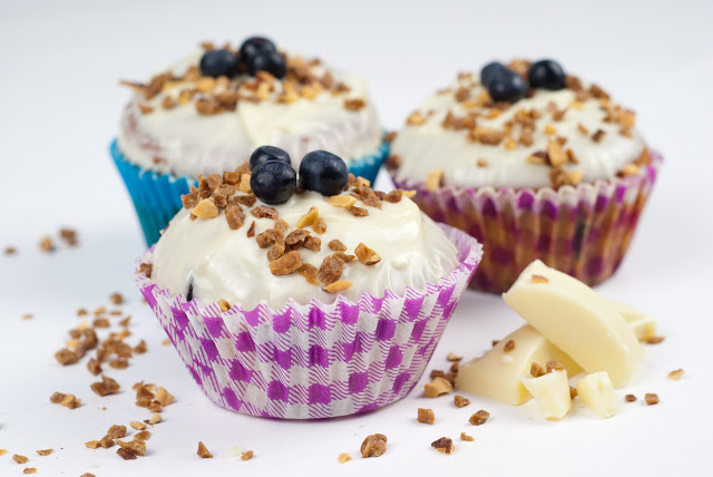 A algunos no les he puesto el azúcar antes de hornear, y a cambio los he cubierto con chocolate blanco y los he adornado con más arándanos y crocanti de avellanas… ñam ñam ñam.
