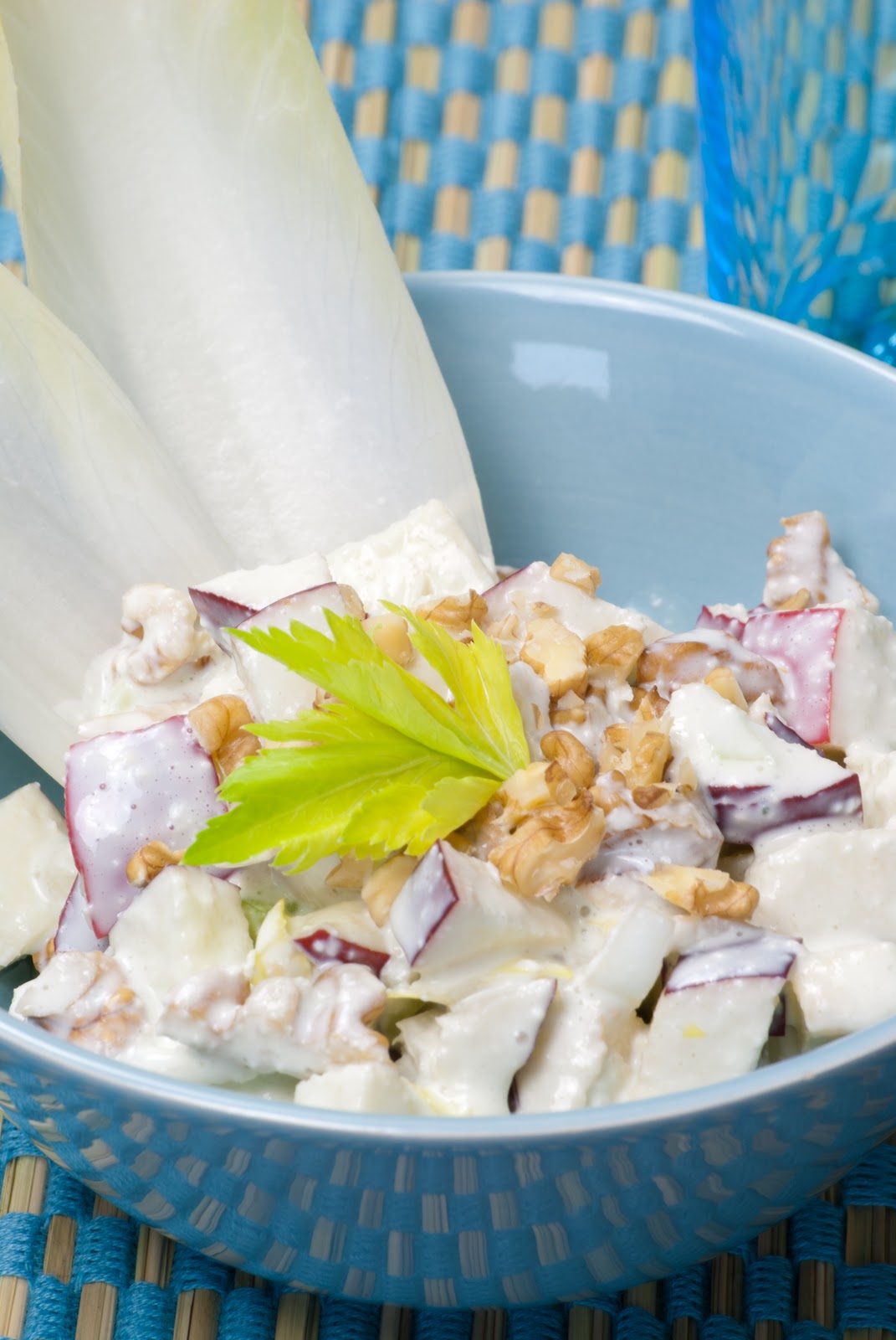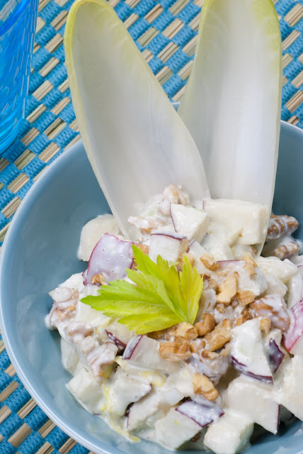 3. Mix everything with the blue cheese dressing and serve with the endive leaves (you can use them as spoon!).