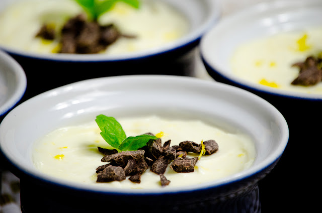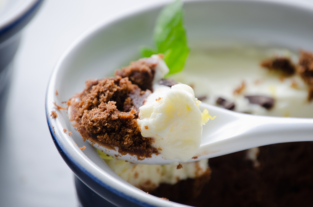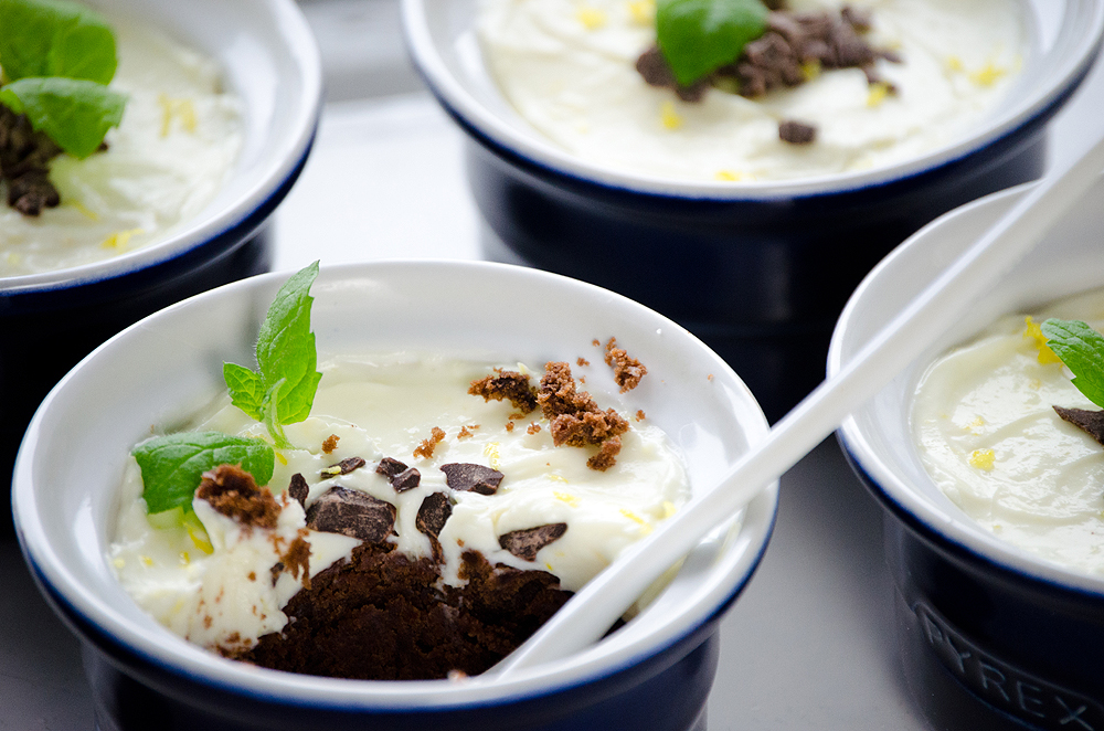 6. Decorate with some chopped chocolate, lemon zest and mint leaves.