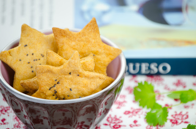 Hoy os traigo una receta sacada de un libro que me encanta, como buena queso-adicta que soy. Son unas crackers picantes para acompañar una tabla de quesos (o lo que mejor os parezca) del libro “Queso” de Fiona Beckett, que os recomiendo encarecidamente si en una vida pasada fuistes ratones o ratonas, como yo. Tiene un capítulo dedicado a las fondues que va a terminar conmigo en el cardiólogo.