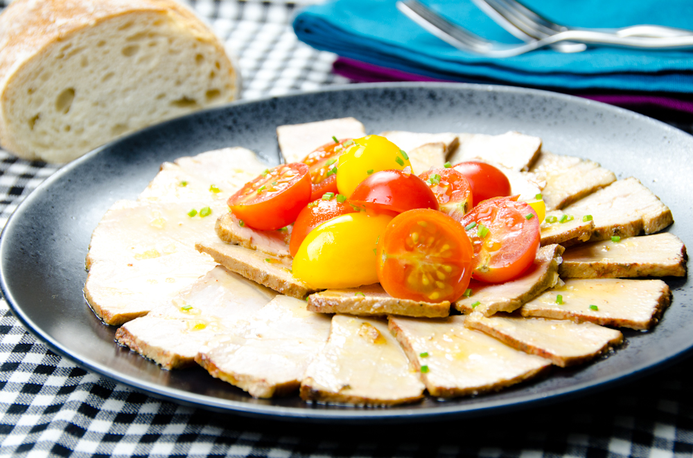 *Este lomo se suele servir cortado en filetes finos, con un poquito del aceite de conservación, unas escamas de sal y unos tomates.