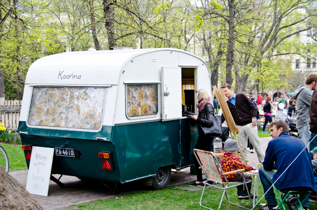 El Ravintolapäiva (Día del Restaurante) se celebró por primera vez en Finlandia el 21 de mayo de 2011 y contó con la participación de 40 restaurantes pop-up en 13 localidades del país. No sé si es posible contar cuántos se animaron el sábado, cuando abrí la web para decidir nuestra ruta los restaurantes se contaban por miles. No sólo en Finlandia, este fenómeno es ahora mundial: restaurantes por toda Europa, Asia, América… increíble. En España parece que el evento aún no es muy conocido, aunque pudimos contar cuatro restaurantes en Barcelona.
