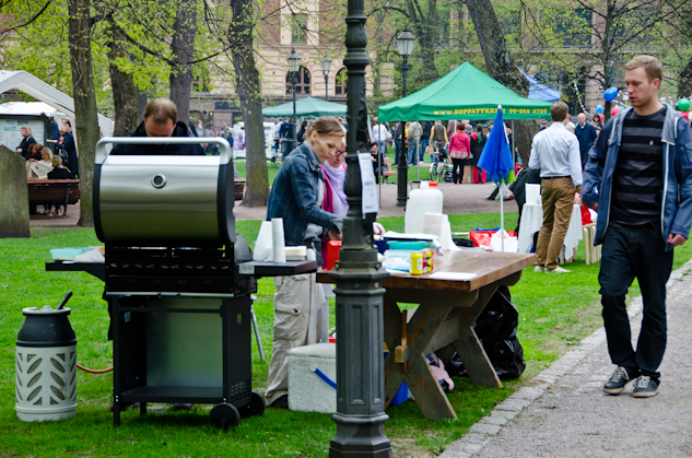 We decided to start in Vanha Kirkkopuisto. We chose this place because the map showed a couple dozens of restaurants in that park and we supposed the ambient would be quite nice there. The surprise was more than pleasant. Lots of pop-up restaurants and people enjoying picnics, it was fantastic. You could just place your blanket on the grass and try things from here and there… the offer was mainly barbecue, but there was a bit of everything: little cafés, an Italian deli, hot dog stand, some soup restaurants and aromas from many parts of the world.