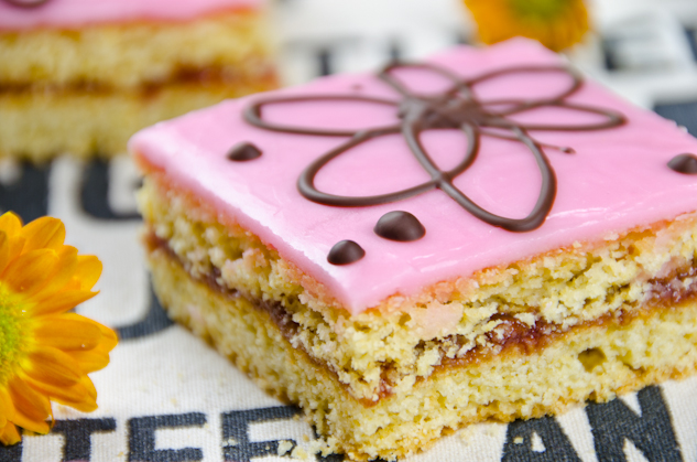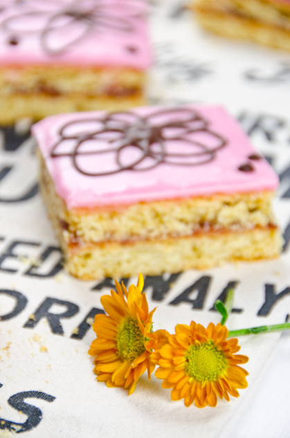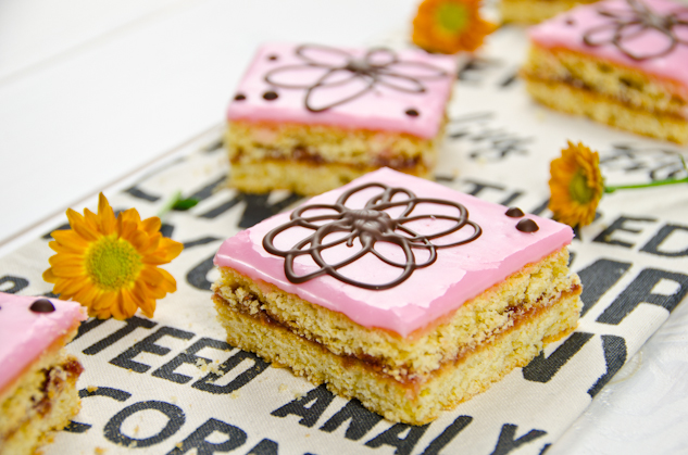 It’s formed by two layers of a paste, similar to sablé, filled with strawberry or raspberry jam and decorated with a layer of pink glaze and thin chocolate lines. I don’t know why a cake that honours an emperor is so dinky but I can assure you something: if it’s not pink it’s not aleksanterinleivos, and there’s nothing I can do about it.